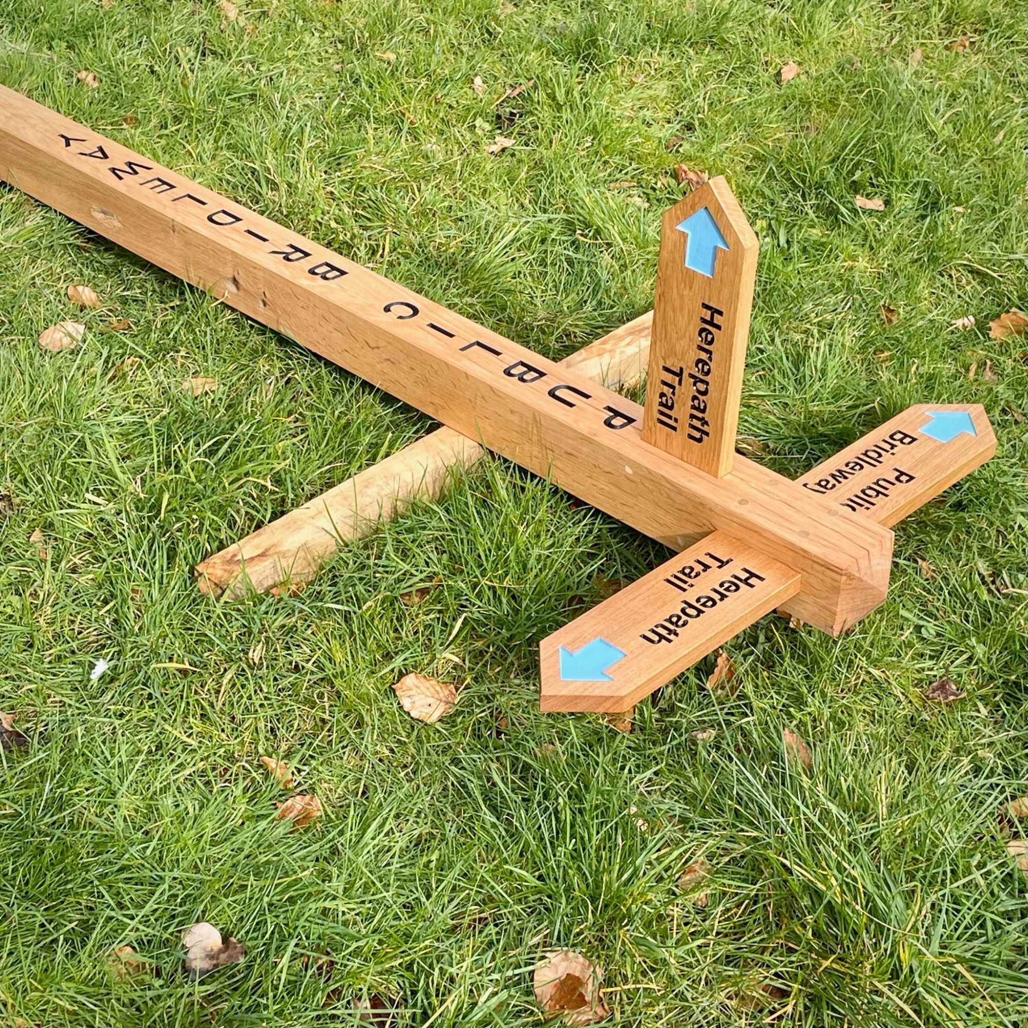 High Quality made to order bespoke Oak Exterior Signs, Waymarkers and Finger Posts. All machined in house from Prime Grade Air Dried Oak to your requirements, specification and budget using Laser Engraving and CNC Routing equipment. Finger Post and Sign refurbishment with matched engraving. Hand painted lettering with mortice and tenon joinery. We can use fresh sawn (Green) or air died oak for the posts. The fingers are made from Prime Grade Air Dried Oak which is oiled for a durable finish and can be morticed with a through or blind tenon. Please get in contact to discuss you requirement and needs. Some images of items we have done. Variouse sign ideas include: house, memorial plaques, weddings, stakes, finger posts the list is endless.